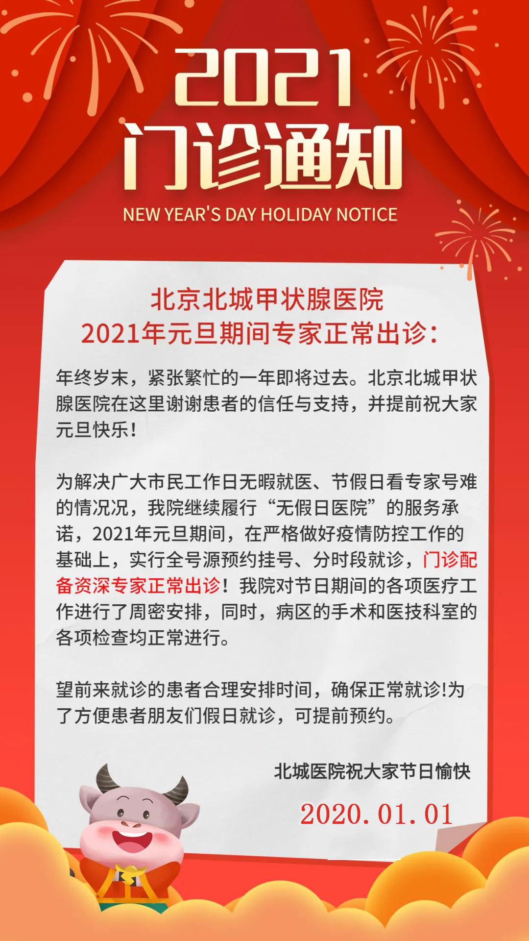 【通知】北京北苑中医医院2021年元旦期间专家正常出诊